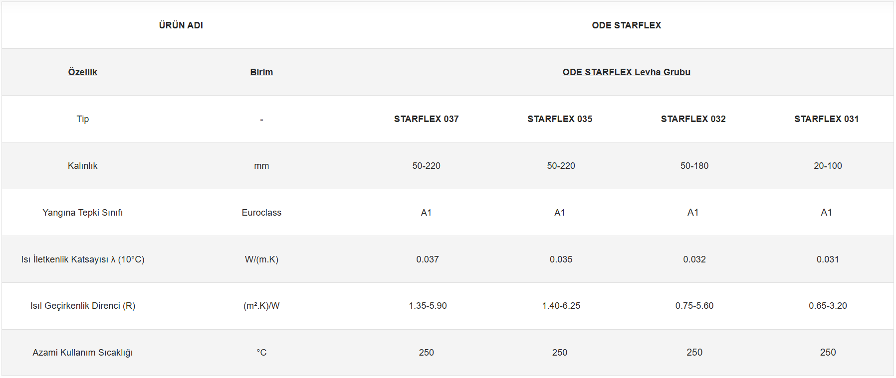 - Yangın sınıfının ‘’A1 Sınıfı Hiç Yanmaz’’ (TS EN 13501-1) olması yangın güvenliği açısından çok önemli bir avantajdır.*